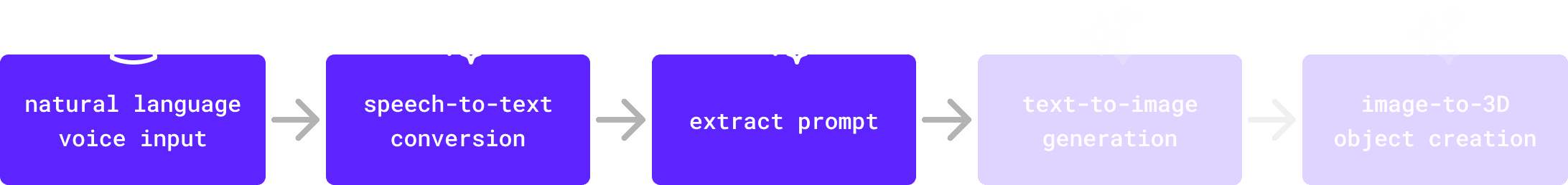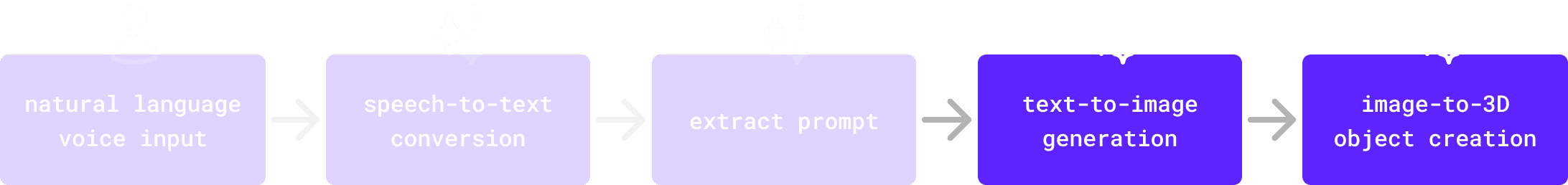 Users say what they want using natural language. Then the system convert their speech into text and extracts a generation prompt.
